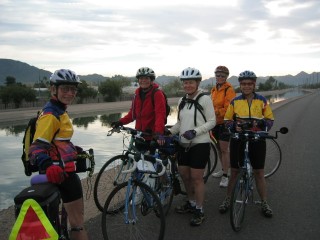 | we had very comfortable weather all day, overcast & never out of the 70's. the route thru phoenix was quite painless. we had been encouraged to travel in slightly larger groups so that everyone would have help keeping on the route. it took lots of attention to the map & route sheet to negotiate all the turns correctly. |