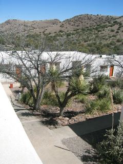 | at 1, many piled into the van for a ride down to ft. davis. some wanted to shop, others to have lunch, most to check out this quaint historical town. since the phone lines at the lodge are in such troublesome condition (they don't even have internet access at the office), i packed up my ibook & took it along, in hopes of finding a phone jack in town that i could use to send thursday's ride report & check emails. |