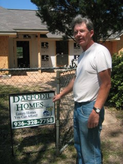 | one of the fellows working on the house came over to chat as we were leaving. we thot we were getting pretty good at understanding the texas drawl, but we couldn't easily catch onto what he was saying. soon we realized his accent was french; he has moved here from france & now owns a construction business in this area....daffodil homes. |