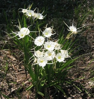 | as i cruised along this afternoon, i saw this little patch of spider lilies along the roadside. we all stopped to photograph them. |