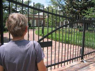 | i took this photo to show where we'd been standing when this little incident occurred. by now, 2 mins after bush left, the gate had already swung shut. |