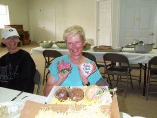 | there was a four-mile bright spot in today's ride. at about 22 mi we turned north to the little town of golden city. we only had to sit on our bike seats & rest our feet on the pedals & we got pushed along at 20 mph. golden city provided another bright spot...cooky's cafe, with a lineup of fresh, homebaked pies like you've never seen...over a dozen. sari & i both picked gooseberry. it reminded us each of our childhood & pies our grandmothers or mothers used to bake. cooky's gooseberry pie was warm & scrumptious. |