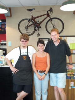 here's a photo of the folks at Bicycle Adventures in pittsburg, kansas: from left it's LeRoy, "the king" of mechanics, & pattie & danny jones, the owners. they're at 109 E. Rose in pittsburg. |