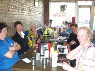 | the first town we came to was marion at about 25 mi. you'll see members of the 'cafe crowde' in the picture. the ringleaders, rose & sarah, spent