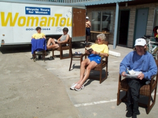 | here's a photo of the folks who ride faster than we do; they get to the next overnight town early enough to relax. from left are debby, anne, barbara, & deanna. | ![]() |