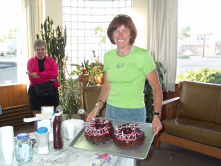 | here's patty showing off her bike-wheel birthday cakes. | ![]() |