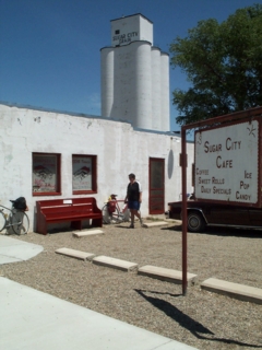 | at 56 miles we rolled into sugar city & the sugar city cafe. |
