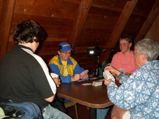 | here's a photo depicting another of the day's activities....tho' this picture was taken last night. layover days almost always provide an opportunity for the card-playing group to get in another hand or 10. |
