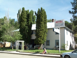 at the end of a leisurely 5-mile coast down the other side of the pass we found ourselves in tiny, quaint mitchell. here's a picture of the historic oregon hotel with me sitting out front; new owners dan & cherie hopper have renovated it. our rooms are very homey & quiet. |