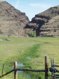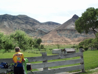 | back on the road, we pedalled on to the much-anticipated sightseeing highlight of the day....the john day fossil beds national monument. i never dreamed that there was this sort of landscape in oregon. this was our first taste of what was to come: picture gorge. |
