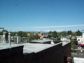 | i took this picture out of our hotel window this morning; the foreground isn't so special but those snow-capped peaks are. the 3 peaks on the right are the 3 sisters. | ![]() |