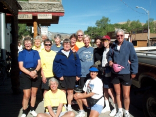 | we 3 roommates these 2 nights--sari, judy, & i--weren't up 'til 6:45 or so; the morning before it was 4:45. at around 8 we joined several others to bike or walk downtown to the cowboy cafe for breakfast. what great food! at rose's suggestion, many of us ordered the veggie skillet & boy were we glad we did! it was a bed of cowboy potatoes & other veggies (chopped onions, peppers, fresh tomatoes) & real cheddar cheese (melted) topped with 2 eggs your way (mine were over easy). it came with 2 slices of good wheat toast, & on the table they had tasty blackberry & boysenberry jams. it's always so nice on layover days to enjoy a slow, relaxing breakfast, & it's even nicer when it's tasty, as today's was. |