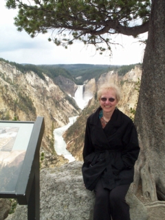 we saw several waterfalls today, too. the most impressive was the lower falls. here's rose sitting on a rock with her back to the falls. the picture doesn't begin to portray the depth of the chasm. as usual, i wasn't getting very close to the edge. but those who did exclaimed at the beauty of the multicolored layers making up this "grand canyon of the yellowstone." |