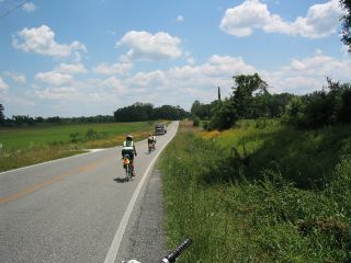 | what a gorgeous day for biking....tho' pretty toasty by late morning---& very humid. most of us left monticello around 7:15-:30. we quickly turned off US 19 onto beautiful county roads that wound thru the trees; at that hour, there were still layers of fog hanging along the treetops. at about 12 miles into the day, we turned onto US 90, where we would remain 'til mile 50. we went thru the towns of greenville, madison, & lee. patty fainer was driving the subaru today; she was parked in a mini-mall parking lot in madison to provide us a sag stop. |